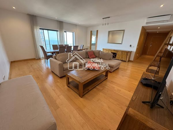 Furnished 3-Bedroom Apartment in Polana in the Indigo Residence Condominium (Jacaranda), Spacious (one of the largest), 4 WCs in total, 1 Suite, All Rooms with Air Conditioning and Closets, 4 WCs (one for service), Equipped American Kitchen, Service Area, Swimming Pool, Party Room, Basement Parking for 1 Car, High Floor with Sea View, Spacious Balcony, 3 Elevators, Generator….